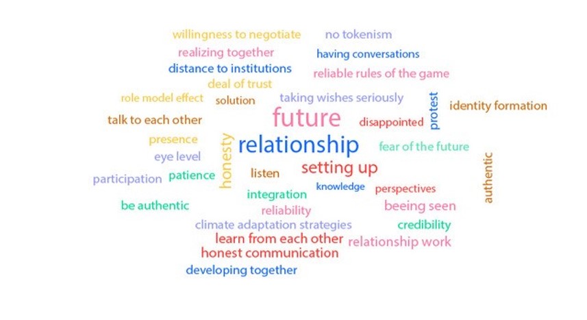 On the strategic level of trustmaking the following aspects were mentioned: Trust is built either through continuous relationship work or through a clear, common goal. Young people should be involved in planning processes at an early stage, not just when conflicts arise. Young people’s need for immediate feedback and quick results should be considered, even though especially in urban planning there are long planning periods of 10-20 years. A realistic idea of the project and the results must be laid open from the beginning, with a clear time and financial frame. Getting to know each other on a personal level.