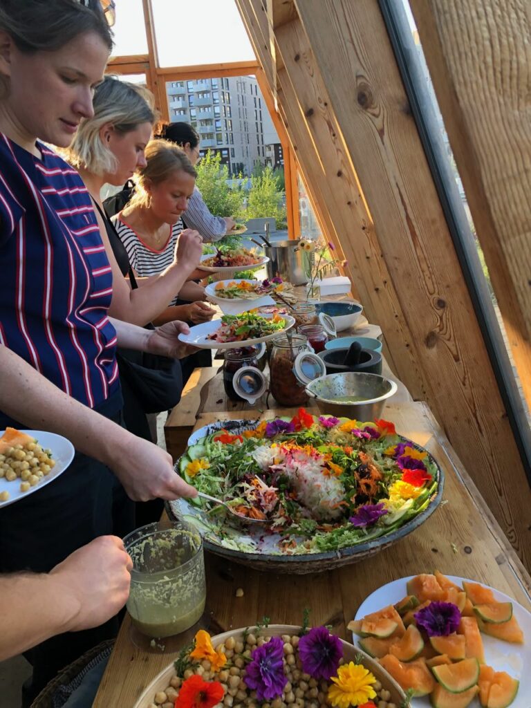 Following this enlightening talk, we embarked on a stroll from the library to Losæter, traversing the new Bjørvika area, passing iconic landmarks like the Munch Museum and Oslo Opera House. Arriving at Losæter, Anne Beate explained the project’s core concept, the collaboration with Futurefarms, the Flatbread society and how it is organized now. The venue hosts a multitude of events throughout the year, including school programs for youth. Beneath the blue sky and radiant sun, our involvement began under the guidance of the city farmer at Losæter. Every Wednesday is an open day, allowing everyone to participate in and contribute to the community garden. It was an enriching experience, fostering learning, connections, and shared efforts. Some were engaged in outdoor tasks, while others prepared a communal feast using the garden’s produce. The day concluded with a delectable meal, a testament to the success and vibrancy of the community at Losæter. Personally, I found that the food had a more satisfying taste when earned through hands-on effort.